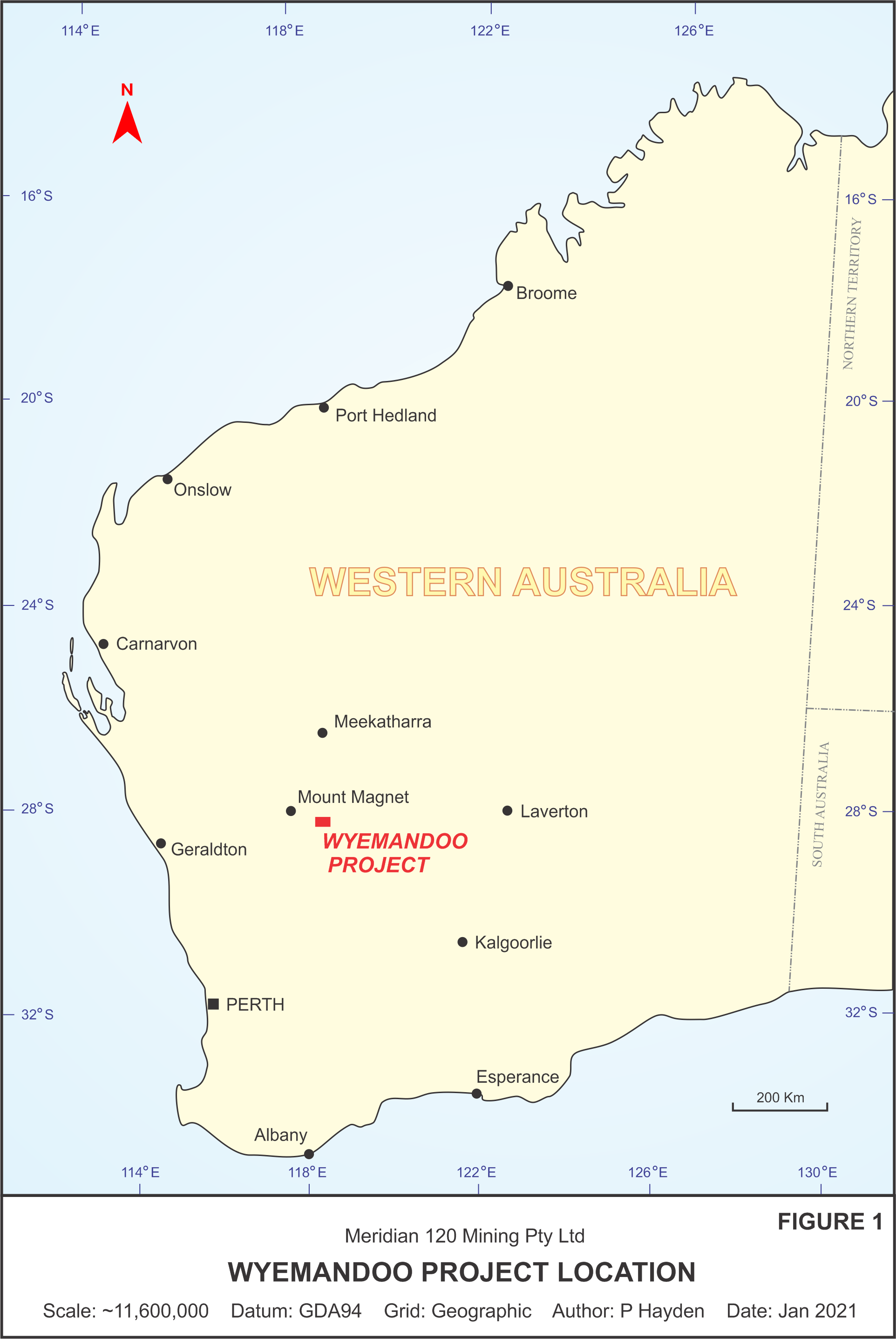 - Granted exploration licence (E57/1017) of 9 sq km held 100% by Meridian 120. Licence valid to 2025