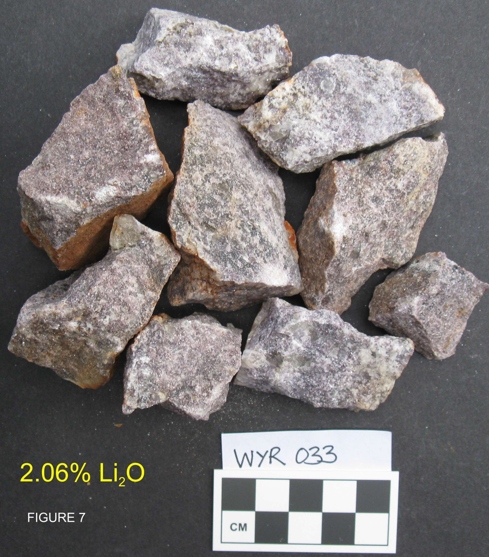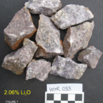 - Pegmatite composite rock chip samples show lithium values up to 2.1% Li2O and have highly anomalous values of tin, tantalum (to 258 ppm Ta) and rubidium (to 1.4% Rb).